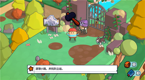 3.当完成与狗狗互动摸摸它的任务后,能获得一个锤子道具。