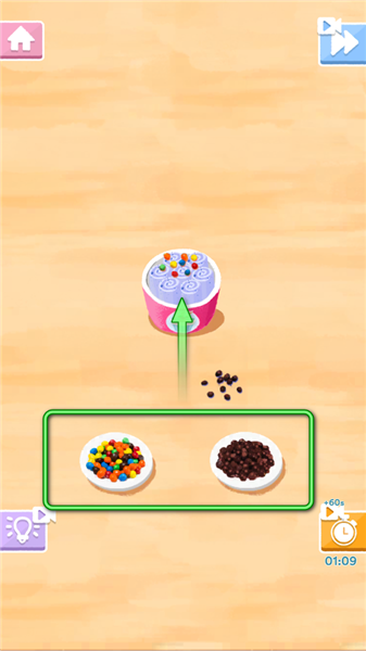 7.最后在食物表面点缀上相应配料,美食制作完成,成功通关。