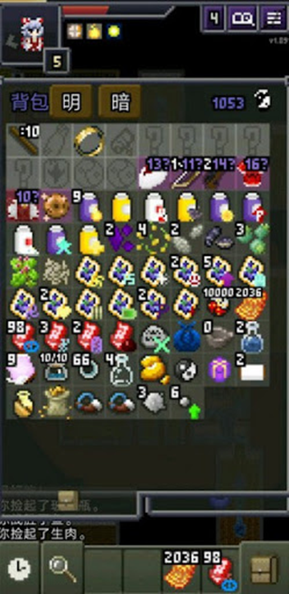 4.背包里存放着玩家在游戏中捡拾到的大量物品。