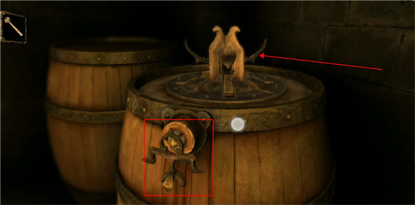 6.接着点击酒桶,把刚拿到的螺母放置在接口处并转动,获取刑具部件。