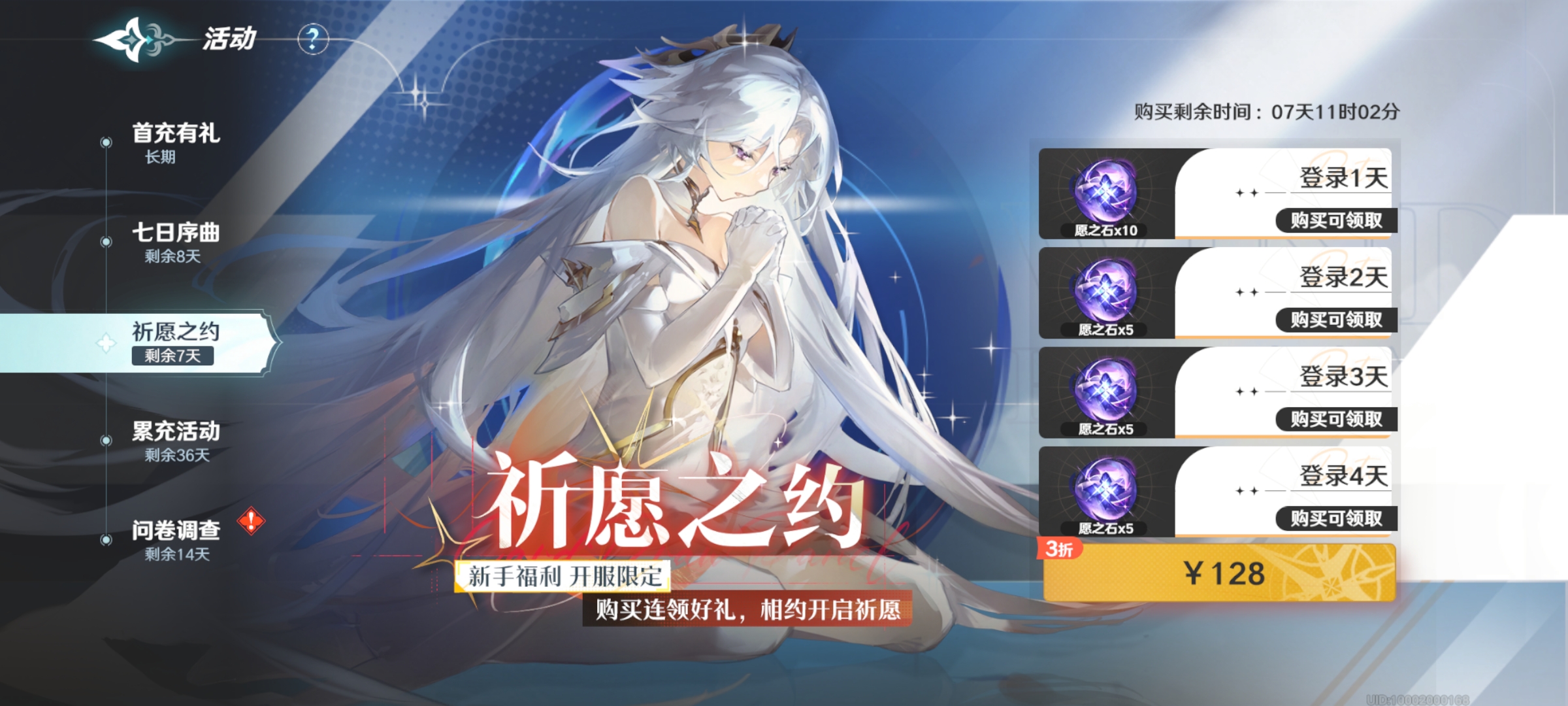 2.祈愿之约充值途径很划算,花费128元,登录满7天,即可获得25个愿之石,其价值相当于4500紫钻,能为游戏进程提供有力支持。