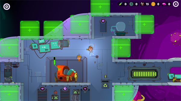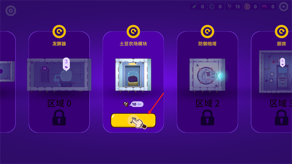 3.游戏主要分为探索与建造两大板块。在基地中,能够挑选各类设施进行建设,选中设施后,再挑选基地内的绿色区域即可完成放置。