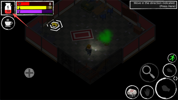 4.急救箱属于容器类物品,打开需耗费一定时间,打开后点击屏幕中间下方的箭头,可一键把急救箱内物品转移至背包。