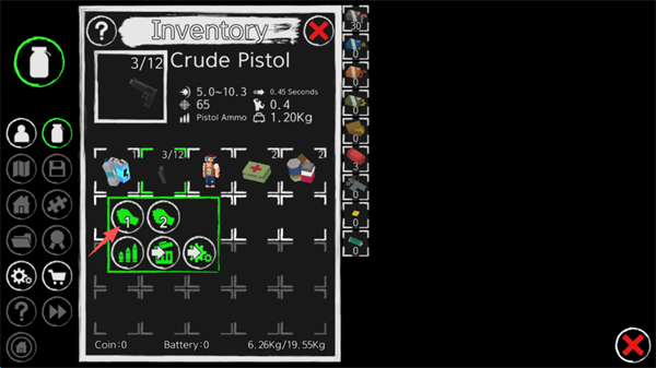 7.想到还没装备上枪械,点击屏幕左上角的“血瓶”图标。