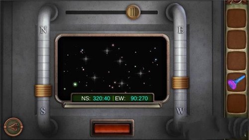 7.点击望远镜中间的按钮,会有提示灯依次亮起,需按顺序按下,总共操作三次,以下用钟表时间代替灯的位置:11、5、4、12;1、5、11、9、10;3、6、9、12、4、8。