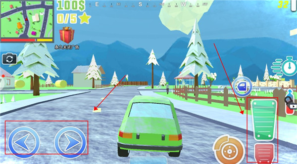 5.驾驶车辆时,左侧用于控制行驶方向,右侧则是加速与刹车的操作按键。