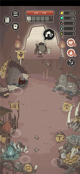 2.操控角色移动至洞穴门口,找到并点击黑色的洞穴图标,角色便会从洞穴中走出,来到荒岛的外部世界。