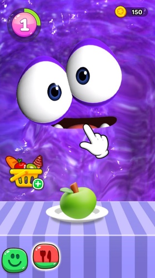 1.轻点下方刀叉图标,即可将苹果送入史莱姆口中完成喂食操作。