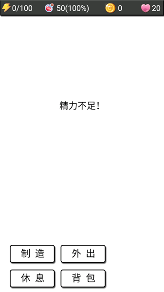 4.当精力消耗殆尽时,点击“回家”进行休整。在制造栏中,玩家可消耗所收集的材料,精心制作装备或实用道具。