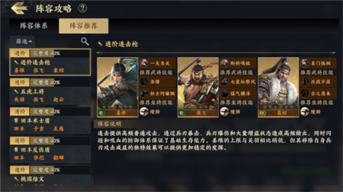 1.连击枪:连击体系借助叠加连击效果,实现高频普通攻击,像姜维、关羽就擅长此道;依靠闪避效果规避伤害,如袁绍、赵云;凭借倒戈效果获取续航能力,例如马超、张飞。该体系能长时间稳定输出高额伤害。