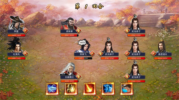 2.到武当找张真人挑战太极阵法,要先攻打晨虚道长,若不先打他,周围人的属性将会翻倍。