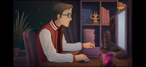 3.主角安吉洛正专注地剪辑创作他的视频内容。
