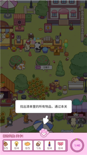 疯狂找东西凭借独特魅力,成为休闲益智游戏中的佳作。踏入游戏,就仿佛进入奇妙猫猫世界,开启一场寻找宝藏的冒险。随着关卡推进,难度逐渐提升,但可爱猫猫会及时提供帮助,让挑战充满乐趣。