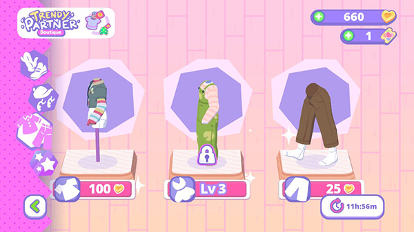 6.获得的金币可在商店中为小伙伴挑选更多款式漂亮的衣服,丰富其衣橱。