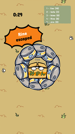 4.当收集鱼干时周边有其他小猫靠近,松开手指,小猫会迅速躲回箱子,成功在游戏时间内存活,就能把小猫领养回家。