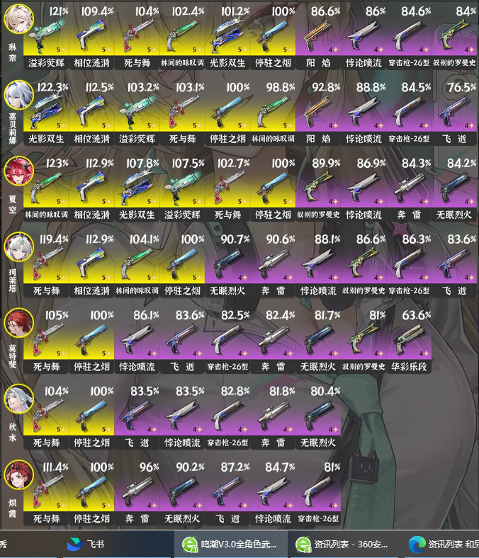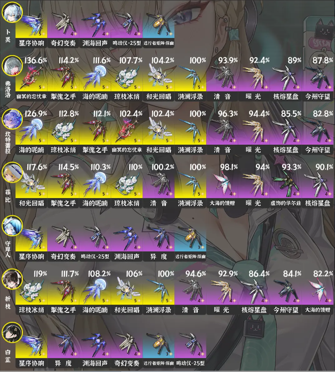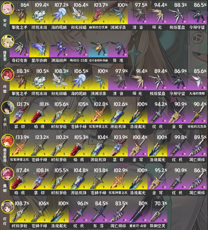 新增琳奈、卡提希娅等角色武器推荐,老角色数据随版本调整更新,部分武器因机制改动优先级变动。
