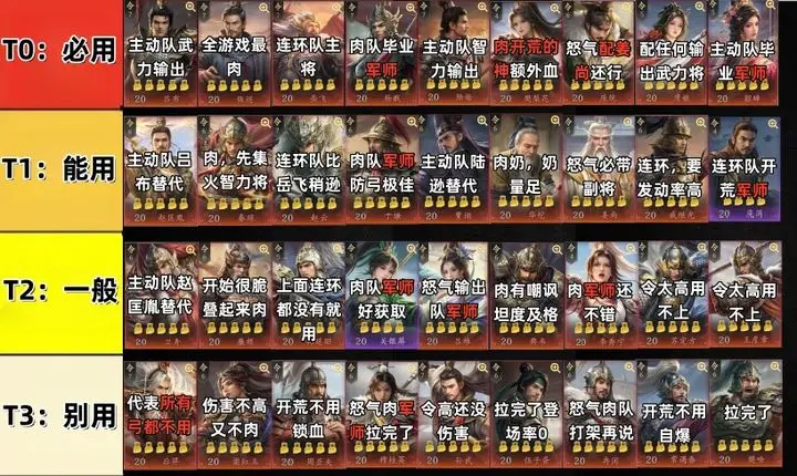 王于兴师武将开荒强度分级