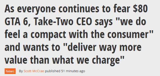 TakeTwo回应GTA6定价传闻强调提供超高价值