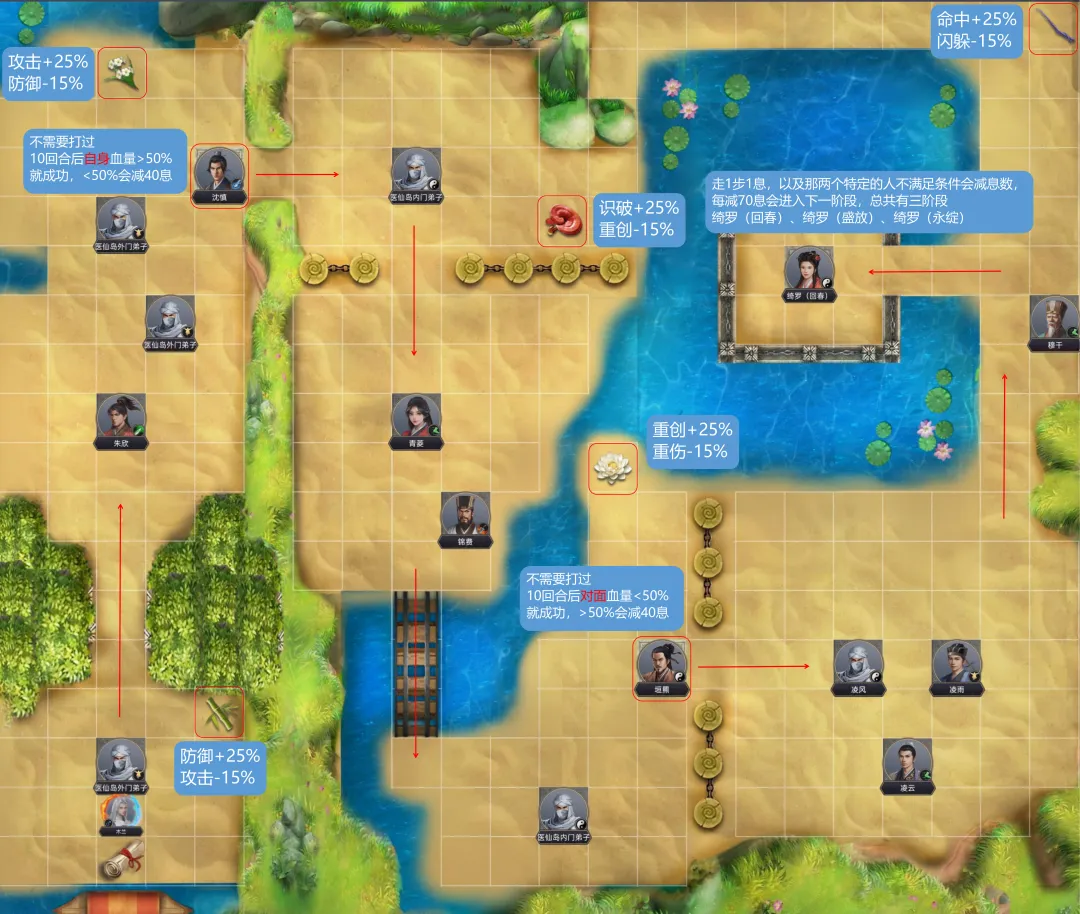 沈慎、锦费、垣羆、BOSS(16500招架)识破需求高,沈慎和垣羆不求打过可求稳用识破药赌上限加攻药;风天加识破药加心印智略,本体11304以上识破可无黄字,但吃识破药减重创,重创高可尝试。