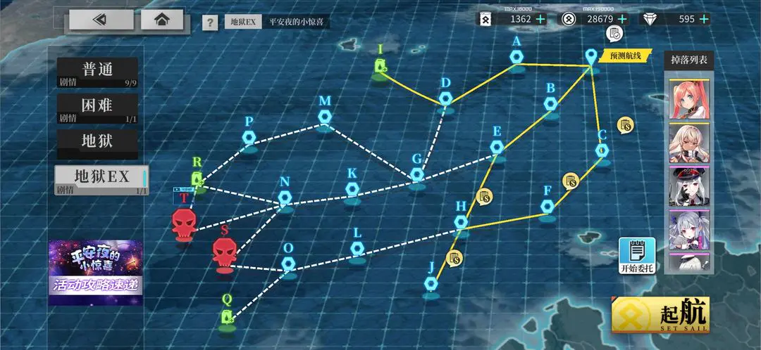 档案关卡推荐选择平安夜活动ex地图的4战路线,该路线油耗稳定且适合长期委托作战。限时打捞活动则推荐选择ex地图的7航母路线,同样具备油耗可控、收益可观的特点。需注意,所选船只不可重复使用,以确保委托作战的有效性。