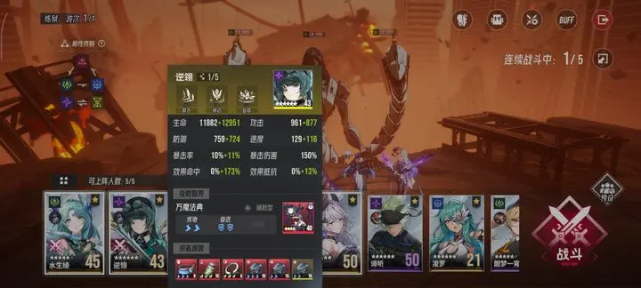 逆翎配置为三速单位,必须确保其行动顺序在BOSS右手行动之后,这样才能及时驱散BOSS获得的防御提升增益。