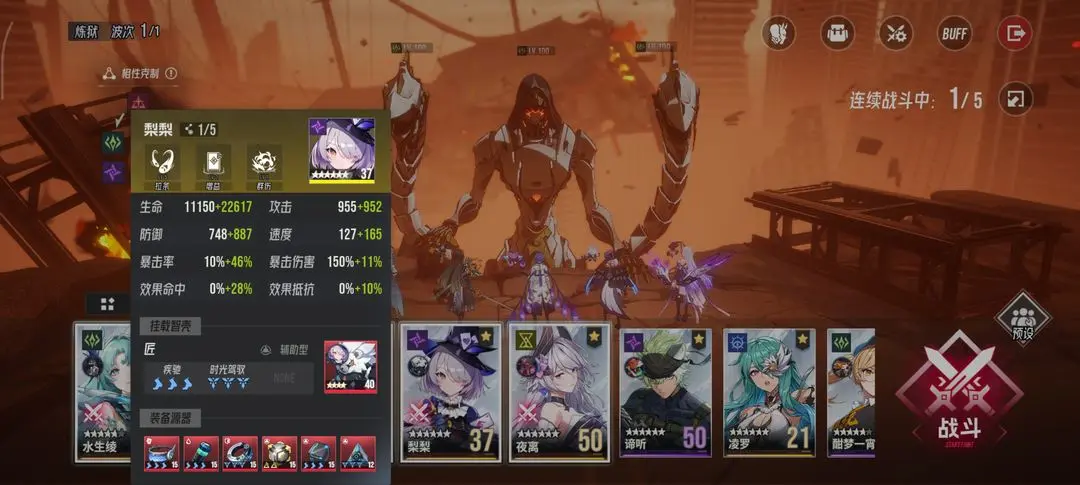 梨梨携带智壳匠套装,优先提升生存能力,确保在BOSS的AOE攻击下能稳定存活。