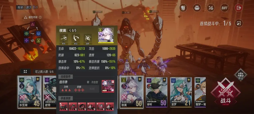输出角色夜离建议攻击力达到3000以上,暴击率80%以上,暴击伤害350%以上,确保在限定回合内击败BOSS。