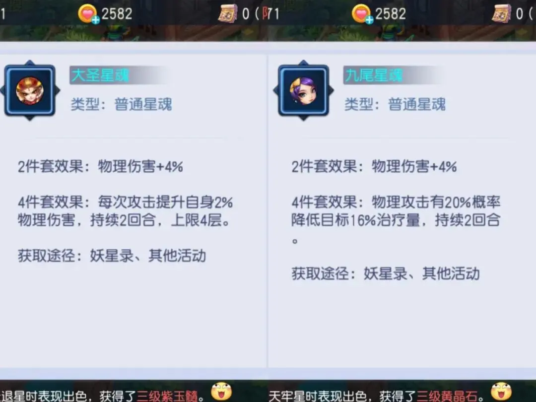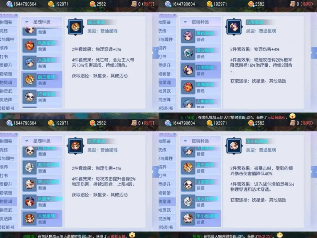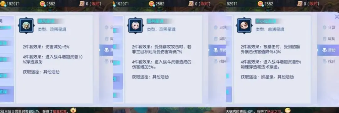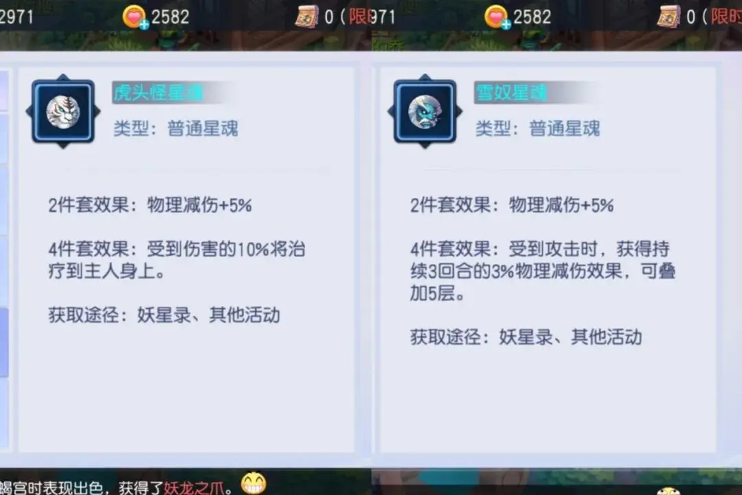 辅助宠物星魂选择简单。有条件玩家优先考虑鱼猫和嘲风四件套;条件有限则选极致物防或法防组合。