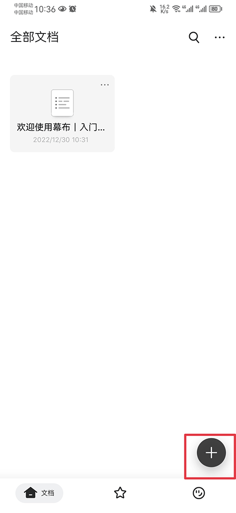 1.新建文档:进入文档页面后,点击“+”号来创建新文档。