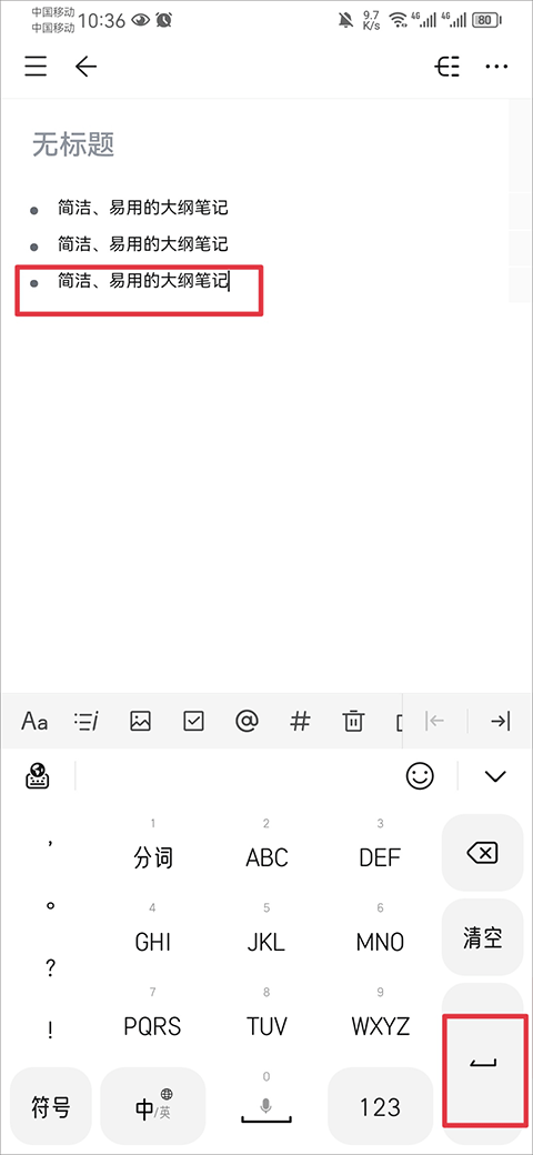 2.输入内容:完成内容输入后,按下键盘的换行或回车键确认。