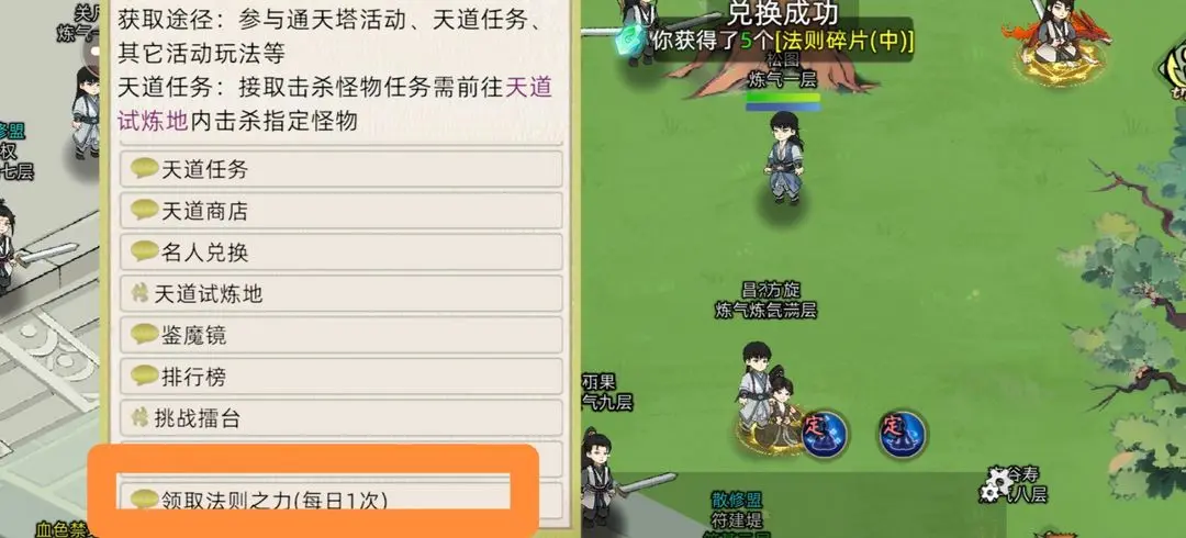 领悟法则经验每日可在天道石领取,通过问心副本可获取大量法则经验。