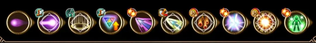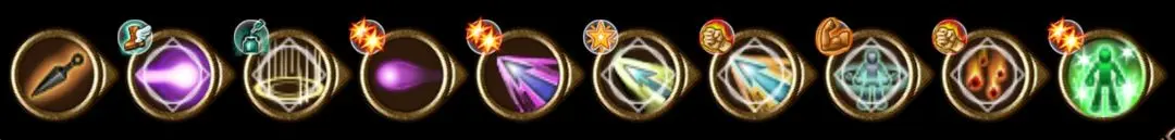 衰弱连击:苦无-增幅流星轰炸(对地)/增幅暴风雪(对火)/增幅闪电术(对水)–补位帝王之光–增幅终结,苦无-补位帝王之光-增幅长枪(对暗)/–灵魂护盾(帝王有延迟,需塞一个技能拖时间)–增幅冲击波(对无)(或不塞连击,苦无-补位帝王-增幅终结后用冲击波爆能连触发帝王,冲击波触发后爆能也能吃到衰弱)。光、风属性BOSS靠自身无法上衰弱。